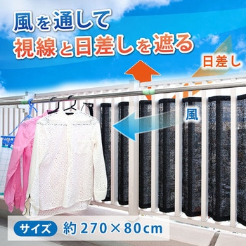 【風を通し視線や日差しを遮るシート】風を通しながら、気になる視線や日差しを遮るベランダ目隠しシート。長さ約270cmのロングサイズなので、広いベランダやバルコニーの日よけにも。