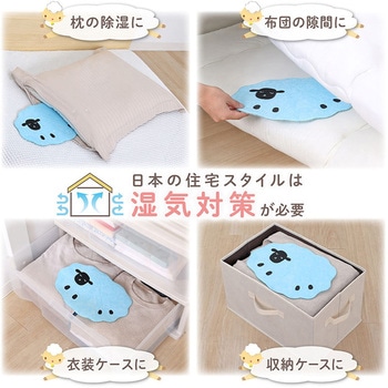 湿気を吸っても天日干しで吸湿性能は回復。繰り返し使えて経済的。眠気を誘うヒツジの癒しデザイン。