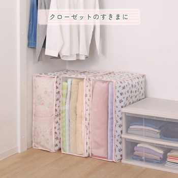 白地にキュートなプチローズ柄をプリント。収納場所が華やかに。