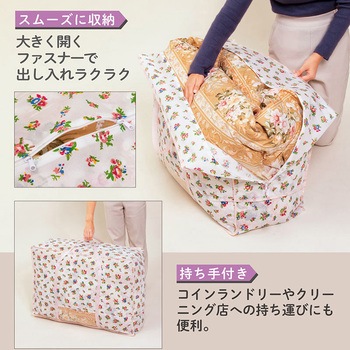 「持ち運びに便利な持ち手】:持ち手付きでコインランドリーやクリーニング店への持ち運びにも便利。