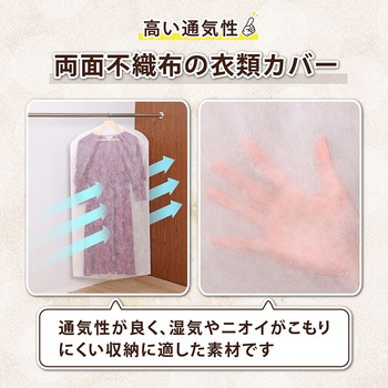 通気性が良く湿気やにおいのこもりにくい、不織布製衣類カバー。