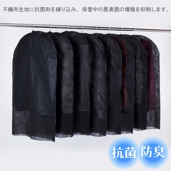 【通気性の良い不織布の衣類カバーで埃を防ぐ】通気性が良く湿気やにおいのこもりにくい不織布製の衣類カバー。オフシーズンの衣類のほこり除けに。