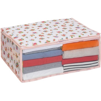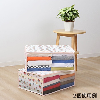 白地にキュートなプチローズ柄をプリント。収納場所が華やかに。