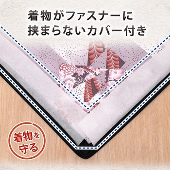 ファスナー開閉時に大切な着物を巻き込んでしまうのを防ぐ、挟み込み防止布付き。