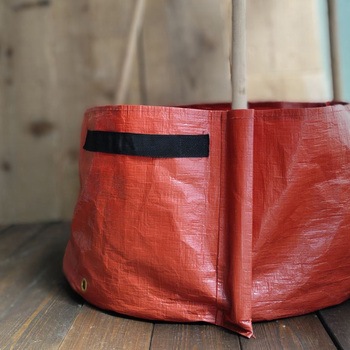 側面に3本の支柱用ポケットがついたプラントポットです。トマトやゴーヤ・豆類などの野菜の栽培に向いてます。