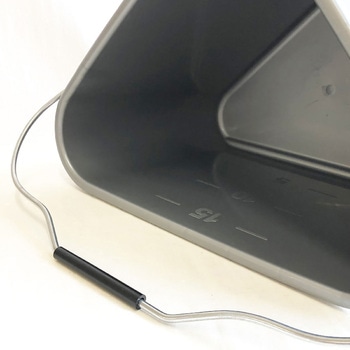 人間工学に基づいて作られた三角バケツ。側面が体に沿うデザインで持ちやすさはもちろん、水を捨てる際も角が役立ちます。