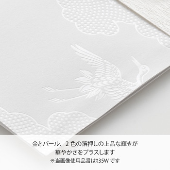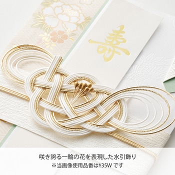 近年増えているフォトウエディングや前撮りなどで人気が高まっている「白無垢」をイメージしたご祝儀袋。水引を外さずに中袋を楽に出し入れできる「らくタッチ」構造採用。きれいに書けるお名前書き方ガイドつき。