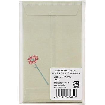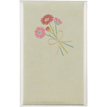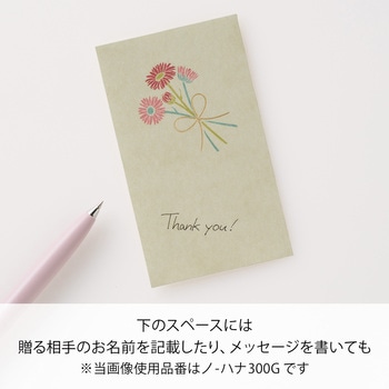 花を贈るように気持ちを添えて。箔押しのリボンがワンポイントでさりげないアクセントになっています。ふんわりとした風合いの「伊予和紙」を使用しています。下のスペースには、贈る相手のお名前や一言メッセージを書くことができます。描かれているガーベラの花言葉は「希望」「常に前進」。