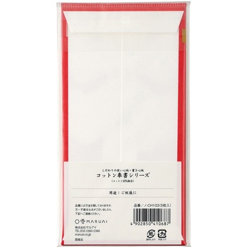 本体原紙の原料にコットンを配合した書き心地にこだわった奉書紙シリーズ(伊予和紙)。「大入」の文字が印刷された万円袋(封筒タイプ)です。日常のちょっとしたお祝い、お礼、心付けなど少額を包む際にお使いいただけます。封緘が簡単なテープのり付。