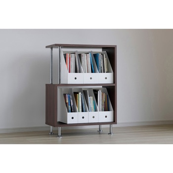 使い方次第で家中整理整頓できるファイルボックス。B4サイズまでの書類が入ります。ななめにカットされた方を手前に向けると取り出しやすく、反対向きにしまうと中身を隠すことができます。丸い穴が空いているので指を引っかければボックスを引き出すことができ、高い場所に置いてあるファイルボックスでも簡単に取り出すことができます。
