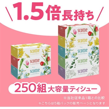 箱の取り替え回数が減らせる長持ちティシュー1箱250組入り!5箱で約8箱分の大容量かさばらず、収納にも便利お肌からワイパー使いまで、日常のあらゆるシーンで使えるスタンダード品質チューリップ(赤)、ミモザ(黄)、ブルースター(青)、ユーカリ(緑)、かすみ草(紫)のデザイン花の監修は人気園芸会社の第一園芸インテリアに癒しのアクセントとなるくすみカラーを採用5箱×12パック(60箱)でのお届けお届けダンボールサイズ:幅65.3×34.6×47cm