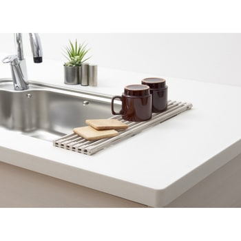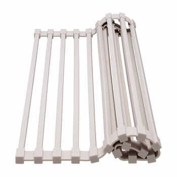 くるっと巻けてコンパクトになるシリコン素材の水切り。洗った野菜の一時置きや、料理の作業スペースに。食後の食器や布巾の乾燥に。全面シリコンコーティングでお手入れラクラク!