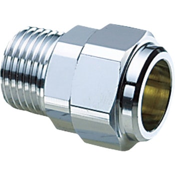 ・ナットをスパナで締付けるだけで、確実なツバ出しが締付けと同時に完了します。 専用ツバ出し工具不要でフレキ管に接続できます。・平パッキンとオーリングによる2重シール構造で、安定したシール性能を発揮します。・フレキ管の供回りはありません。・テーパおねじ(Rねじ)