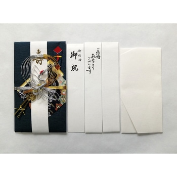 鶴飾りの御結婚祝金封。短冊4枚入り(寿・ご結婚おめでとうございます・御結婚御祝・白無地)中袋付き。