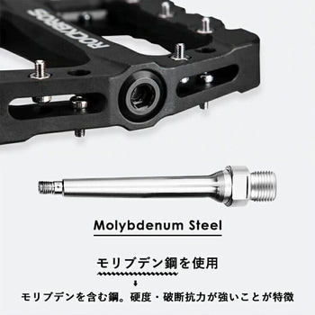 用途軽量ナイロン繊維ボディと高耐久クロモリ鋼スピンドルシャフトを採用した、バランスに優れたフラットペダル。