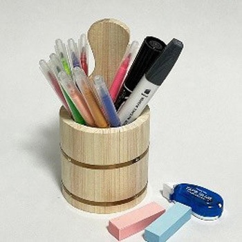 日本産ヒノキ無垢材から作ったミニサイズの手桶です。デスクのペンスタンドとして使ったり、お部屋のちょっとしたインテリアとしても映える一品です。(水を入れたり食品を入れる仕様ではありませんのでご注意ください)