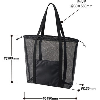 メッシュ素材がポイントのビッグサイズトートです。口元が絞れる巾着タイプなので、荷物が増えても安心感があります。アクティブシーンにもぴったりなさわやかなカラー展開です。M・L・LLの3サイズ展開で、LLサイズは大判のバスタオルや1Lボトルなど大きめのものも余裕をもって入れることができるため、水場のレジャーなどにも最適です。また外ポケット付きなのでスマホなどをいれておくのに便利な仕様です。