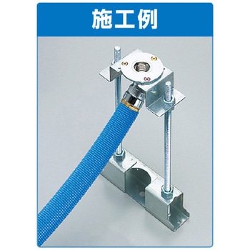 ・ダブルロックジョイントの配管アダプター(ツバ径Φ58)の床立上げ用座金。・洗面台、台所流し台、トイレ等、床から取出す立上げ配管に使用。・付属の全ねじ長さを調整することにより、コンクリートスラブ面より床までの高さが90~310mmの広い範囲で使用可能。・取付面の状況に関わらず、固定座金のセンター取付穴を使用することにより、しっかり固定が可能。