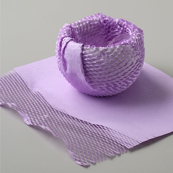 細かく入った切り込みを引っ張ることで、立体的な網目状になる紙製緩衝材です。企業のコーポレートカラーや、商品のテーマカラーに合わせた色を選べる10色展開です。