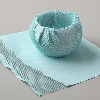 細かく入った切り込みを引っ張ることで、立体的な網目状になる紙製緩衝材です。企業のコーポレートカラーや、商品のテーマカラーに合わせた色を選べる10色展開です。