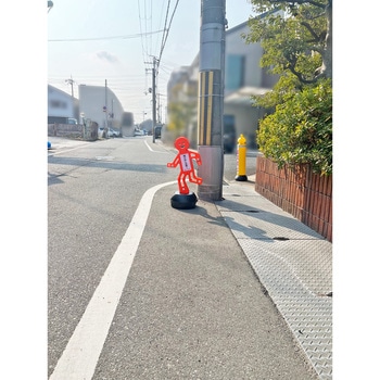 インパクトのある人型デザインで、子供の飛び出しや歩行者との接触など、ドライバーへの注意をうながします。