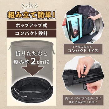 【屋外で活躍する、折りたたみ式ごみ箱】キャンプやバーベキューなどのアウトドアの際に野外で使える、折りたためるごみ箱。