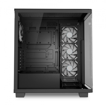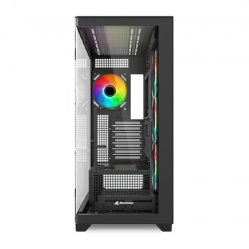 「ELITE SHARK]シリーズは、Sharkoon社のラインナップにおいて最高峰に位置するPCケースです。 フロントとサイドが一体化された曲面ガラスパネルによるクリアなピラーレスデザインに加え、最新のBTFマザーボードとの互換性を備えることで、配線の美しさと組み立ての容易さを両立しており、まさにフラッグシップと呼ぶにふさわしいモデルです。 今回、ATX対応の「CA500」、Micro-ATX対応の「CM100]の2機種がラインナップされています。 両機種とも4基の120mm ARGBファンと5ポートRGBコントローラーを標準搭載しており、多彩なカラーやイルミネーション効果を楽しむことが可能です。 また最大2基のラジエーター用スペースが用意されており、ハイエンド志向のユーザーが求める高い冷却性能にも応えられる十分な拡張性を備えています。 曲面ガラスによる究極のパノラマビューを実現し、強力な冷却性能や最新規格への対応を兼ね備えたELITE SHARKはハイエンドPC構築に最適な新世代のPCケースです。