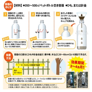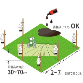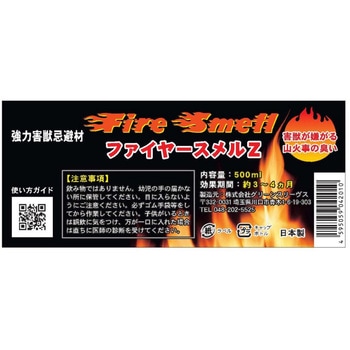 『強力害獣忌避剤 ファイヤースメルZ』は、獣や鳥が嫌う強烈な焦げ臭いにおいを発生させる忌避剤です。これらの害獣・害鳥は山火事の臭いと勘違いし、ファイヤースメルZを設置した近辺には近寄らせない効果を発揮します。害獣を入れたくないエリアに人工的に山火事の臭いを発生させ、臭いのバリアで侵入を防ぎ、イノシシ・シカ・クマによる農作物や人身の被害を低減します。【効果的な設置方法】1.動物をよけたい場所に2~7mくらいの間隔で取りつけるだけ!2.地面に直接まいてもOK!!(効果期間は1カ月程度となります)