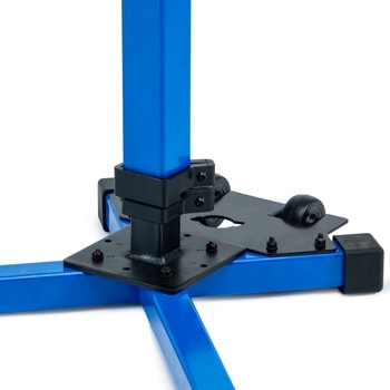 クランプに取り付けた自転車を、ハンドクランクを回して持ち上げることができるリペアスタンドです。自転車を持ち上げる動作が不要なため、作業の負担を軽減することができます。クランプは58cm昇降でき、ハンドクランクの他、10mmソケット付きの電動ドリルでの昇降も可能です。スタンドの脚はキャスター一体型で、スタンドの位置変えをスムーズに行うことができます。脚を組み立てず、ベースプレート上で使用したり、床に直接ボルトで固定することも可能です。