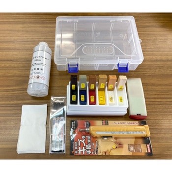 電池式のコテ・充填剤・木目描き用の筆ペンなどをセットにした補修キットです。