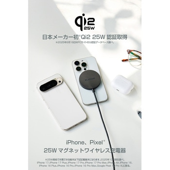 用途マグネットで対応するスマートフォンに固定するだけで高速充電できる、Qi2 25W規格対応のワイヤレス充電器です。