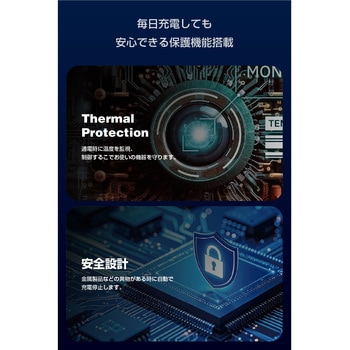 異物検知機能を搭載。スマートフォンと充電器の間にコインなどの金属異物がある場合は充電を停止し、異常発熱のリスクを軽減します。