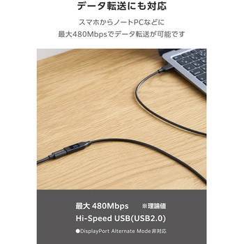 充電状況がひと目で分かる、電力ディスプレイ付きUSB Type-C(TM)延長ケーブルです。接続した機器への充電電力値がリアルタイムで確認でき、接続したケーブルが正しく充電できているか視覚的に確認できるため、安心です。最大240WのUSB Power Delivery充電や最大480Mbpsでのデータ転送が可能です。
