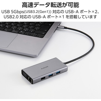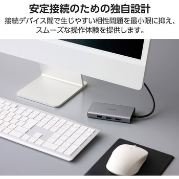 仕様●LANポート(ダウンストリーム):RJ-45(1000BASE-T/100BASE-TX/10BASE-T)●カードリーダー(ダウンストリーム)(1):SDカードスロット×1 ※SD/SDHC/SDXC●カードリーダー(ダウンストリーム)(2):microSDカードスロット×1 ※microSD/microSDHC/microSDXC●コネクター仕様(アップストリーム):USB Type-C(TM)プラグ<USB>、USB Power Delivery対応(最大入力100W/最大出力90W)、DisplayPort(TM) Alternate Mode(USB2.0接続時は、USB2.0互換で動作(USB2.0接続時は、映像出力非対応))●映像出力ポート(ダウンストリーム)(1):HDMI×1<対応解像度●映像出力ポート(ダウンストリーム)(2):VGA×1<対応解像度●音声ポート(ダウンストリーム):Φ3.5mm4極ステレオミニジャック色シルバー外形寸法(mm)幅約105×奥行約54×高さ約16 ※ケーブル含まず対応OS(備考)※各OSの最新バージョンへのアップデートや、サービスパックのインストールが必要になる場合があります。、(Windows)Windows 11/Windows 10、(iPadOS)iPadOS 18、(macOS)macOS Sequoia15動作環境温度5℃~40℃、湿度25%~75% ※結露なきこと保証期間1年間ケーブル長(cm)約25 ※プラグ含まずUSBポート(ダウンストリーム)(1):USB Type-Cポート×1 ※充電専用USB Power Deliveryポート、(ダウンストリーム)(2):USB-Aポート<USB>×2 ※映像出力非対応、(ダウンストリーム)(3):USB-Aポート<USB>×1内容量1個