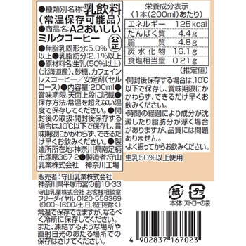 北海道産A2生乳使用。コーヒーはカフェインレス豆使用のやさしい味わいのミルクコーヒーです。