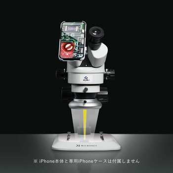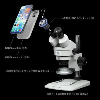 ・顕微鏡用iPhone取り付けアダプター i-NTER LENSが付属。接眼レンズ部にiPhoneを取り付けて顕微鏡像を手軽に撮影できます