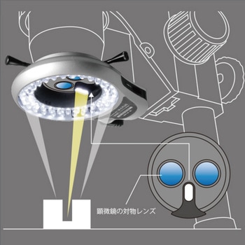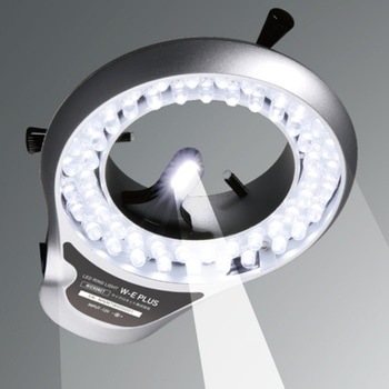 ・垂直照明付き2重巻きLEDリング照明装置 W-E PLUS がセット。高さ・深さのあるサンプルも奥まで照明できます