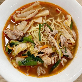 奈良天理の有名店の味を参考に作りました。豚骨ベースの醤油スープを野菜のうま味やにんにく豆板醤で仕上げたピリ辛ラーメンスープです。