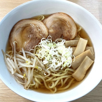 喜多方の有名店の味を参考に作りました。鶏と豚のスープのコクと煮干の魚介感が効いたスープです。