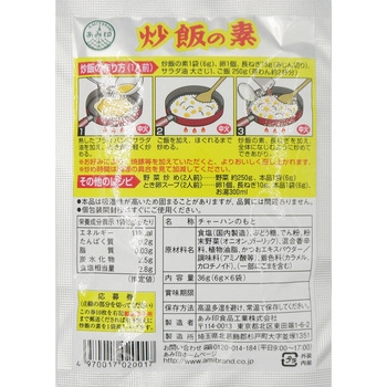 昭和33年発売の元祖炒飯の素です。塩味ベースの野菜パウダーの甘味と多彩なスパイスの香りが特徴です。