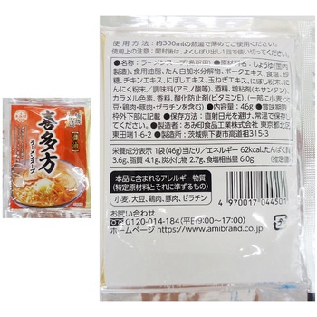 1点のみご購入の場合は、セット商品のみで梱包してお届けします。複数個購入や他の商品と一緒にご購入いただいた場合は、同梱してお届けすることがあります。あみ印 麺旅街道 札幌味噌ラーメンスープ 65g×10個/あみ印 麺旅街道 喜多方ラーメンスープ 46g×10個/を詰め合わせております。