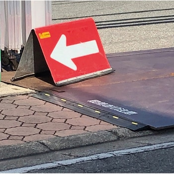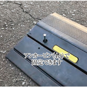 KY段差スルーRはリバーシブルで使用できるゴム製スロープです。敷鉄板の上に被せても、下に敷いても、どちらでも使用可能なリバーシブルスロープです。黄色ブレードにより視認性がアップしています。良質なゴムを使用しており耐久性抜群です。アンカーピン用の穴も開いているので固定も可能です。