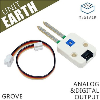 土壌中に含まれる水分を測定するためのM5Stack用土壌水分センサユニットです。2本の突き出たパッドがセンサ用のプローブとして機能し、可変抵抗で調整します。植物栽培やガーデニングなどボタニカルライフの快適化に多大な貢献をもたらします。