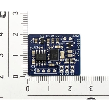 BoschSensortec社製のスマートセンサーBNO055を搭載した加速度3軸/ジャイロ3軸/磁気コンパス3軸を計測できる姿勢センシングモジュールです。BNO055は、ArmCortex-M0マイコンを内蔵し、3方向の加速度測定(静止中の重力加速度や加減速時の加速度の測定)、3軸の回転方向の測定(基板を中心に回転する動作を測定)、3軸の磁気コンパス(3方向の磁力の強さを測定)が可能です。