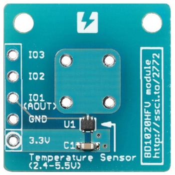 ローム社のアナログ出力温度センサを搭載したセンサモジュールです。動作電圧は2.4V~5.5Vです。センサ出力は、電源電圧にかかわらず温度に逆比例したアナログ電圧で出力されます。本製品は単体での使用はもちろん、Contaベースシールドに搭載することもできます。ピンヘッダは、はんだ付け済みです。※Conta規格とは、ブレークアウト基板の外形/コネクタ/信号配列などに一定の規約を設けることで、各基板間の相互接続性を確保するための規格です。