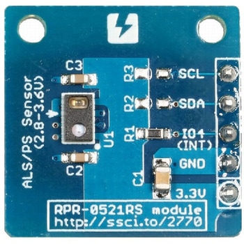 ローム社の照度/近接一体型センサRPR-0521RSを搭載したセンサモジュールです。センサは1.8V系のI2Cバスにも対応していますので、変更したい場合はRPR-0521RSのデータシートを参照してください。