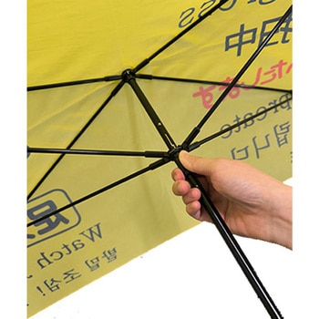 カサばらない表示傘。パッと広げてインパクト!サッと畳んでコンパクト!傘型タイプの置き型サイン標識です。文字が印字されているので、分かりやすく周囲に対して注意を促す事ができます。作業後はすぐに畳んでコンパクト、撤収に時間はかかりません。