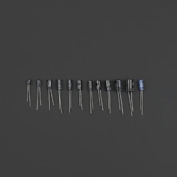 このパックには、さまざまな静電容量と定格電圧を備えた12種類のコンデンサーが付属しています。