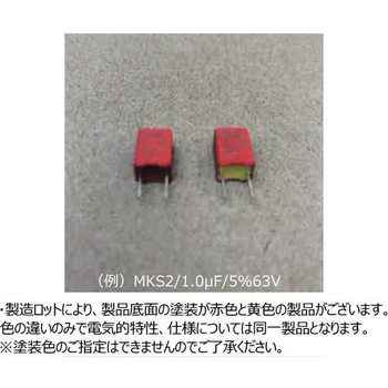 製造ロットにより、製品底面の塗装が赤色と黄色の製品がございます。色の違いのみで電気的特性、仕様については同一製品となります。