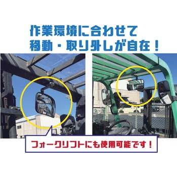 重機にネオジウム磁石で後付け可能な補助ミラー!フォークリフトにも取付可能。